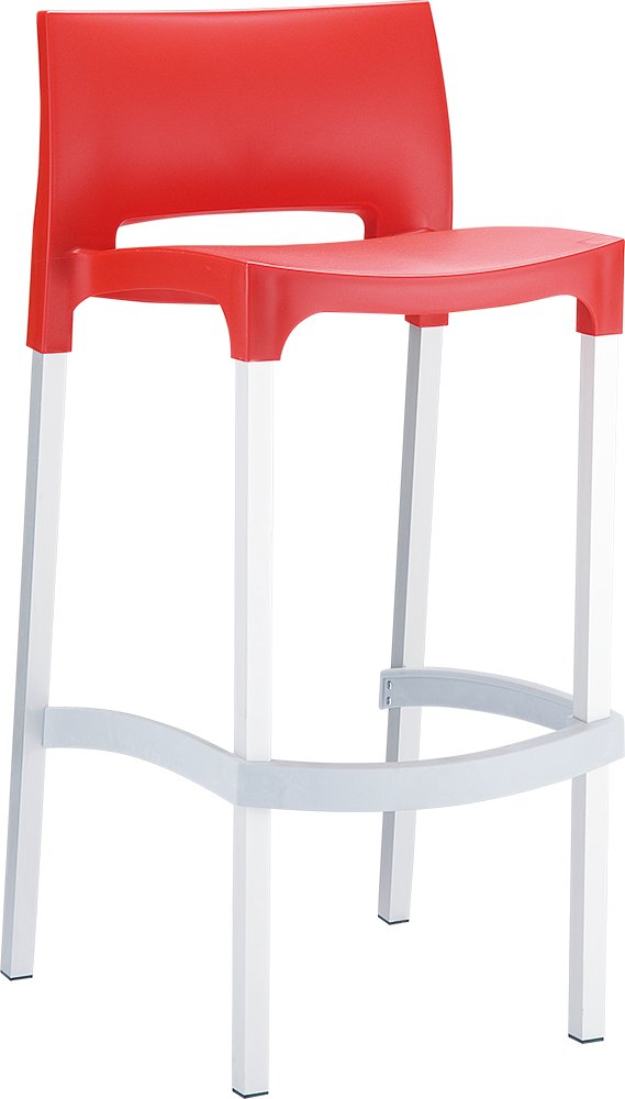 Met een zithoogte van 75 cm en een handige voetensteun, biedt de rode Gio 75 niet alleen comfort, maar ook een krachtige visuele impact. Gemaakt van recyclebaar polypropyleen voor de zitting en rugleuning, en stevige geanodiseerde aluminium poten van 25x25 mm, combineert deze kruk duurzaamheid met een gedurfd ontwerp.