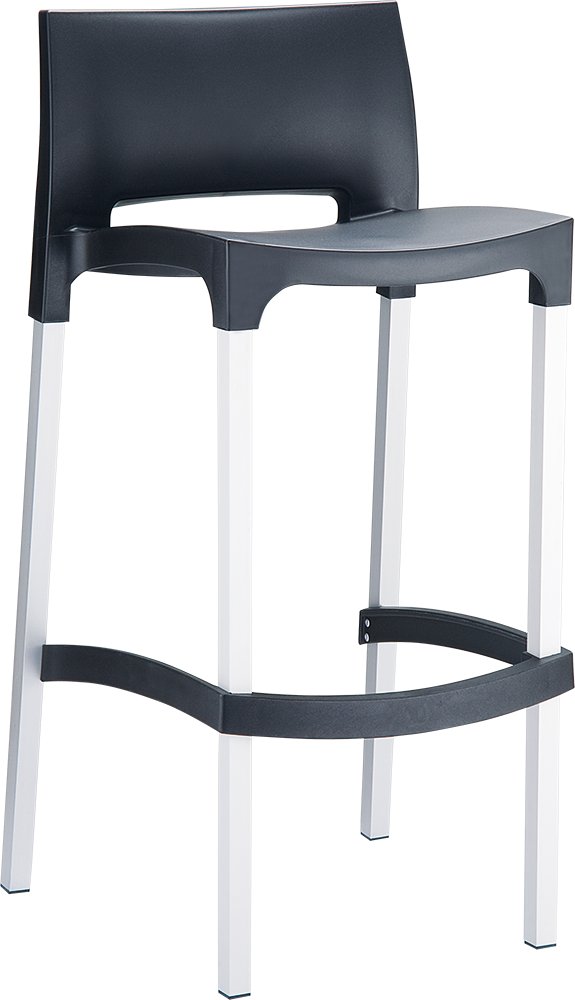 Met een zithoogte van 75 cm en een handige voetensteun, biedt de zwarte Gio 75 niet alleen comfort, maar ook een tijdloos design. Gemaakt van recyclebaar polypropyleen voor de zitting en rugleuning, en stevige geanodiseerde aluminium poten van 25x25 mm, combineert deze kruk duurzaamheid met een strakke esthetiek.