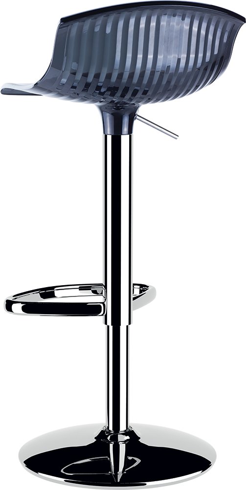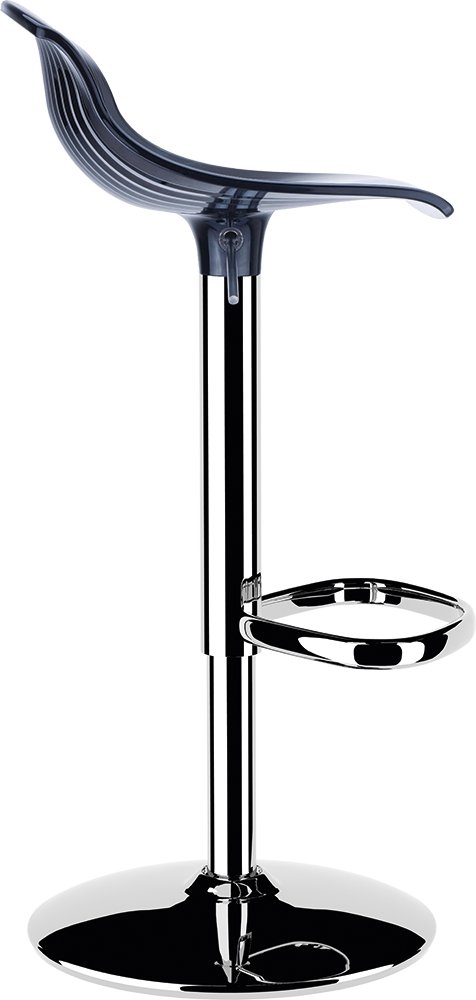 De basis en kolom zijn gemaakt van roestvrij staal, wat zorgt voor een strakke, moderne uitstraling en ultieme duurzaamheid. De transparante zwarte zitting, vervaardigd uit recyclebaar polycarbonaat, geeft je ruimte een stijlvolle en eigentijdse look. Deze kruk is exclusief voor binnengebruik en past perfect in elke moderne setting.