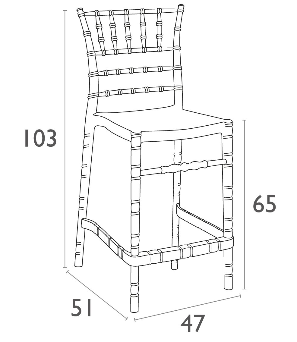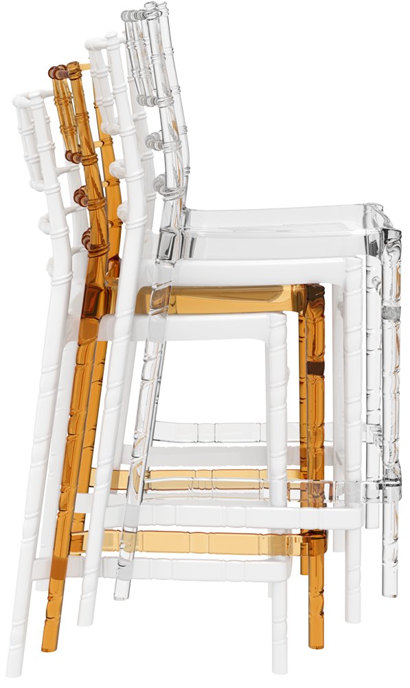 En het beste deel? Ze zijn stapelbaar! Dat betekent meer ruimte voor dansvloeren, cadeautafels en taarttafels. Dus, of je nu een intieme bruiloft organiseert of een groots tuinfeest, de transparante Chiavari Bar 65 is jouw go-to keuze voor een stijlvolle en moderne zitplek.