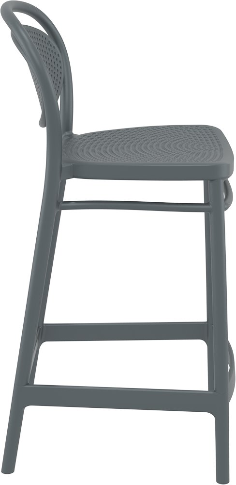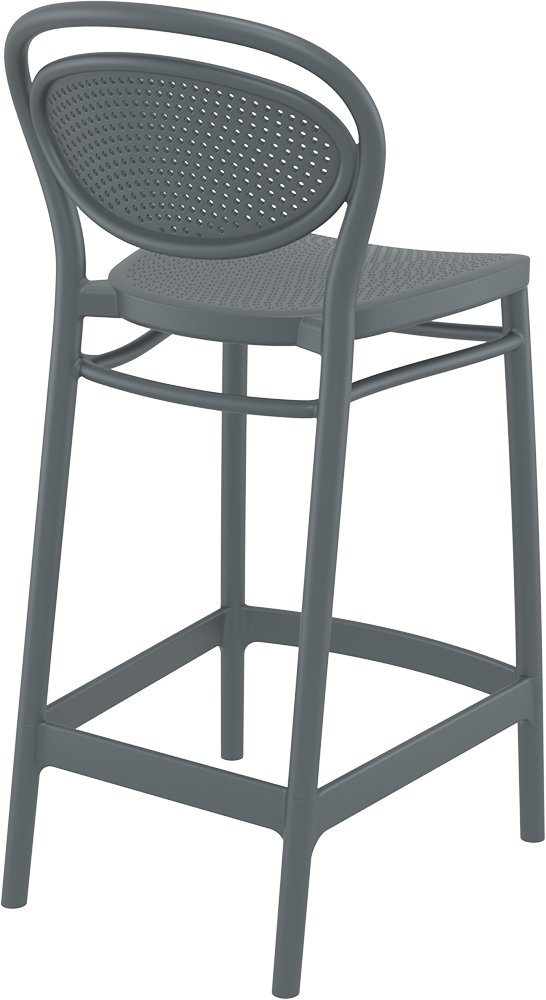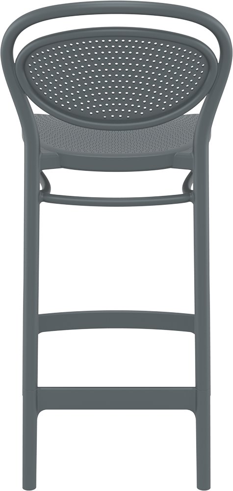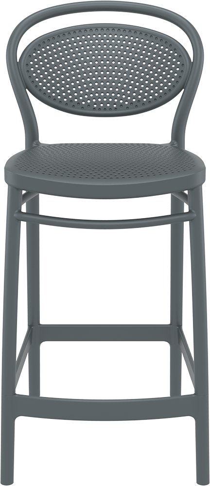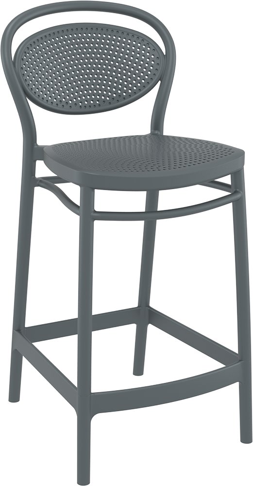 Geef je buitenruimte een moderne touch met de donkergrijze Marcel Bar 65 van Siesta! Deze eigentijdse kruk combineert stijl met comfort op een verbluffende manier. Met perforaties in zowel de rugleuning als de zitting blijf je zelfs op de warmste dagen heerlijk koel en comfortabel zitten.
