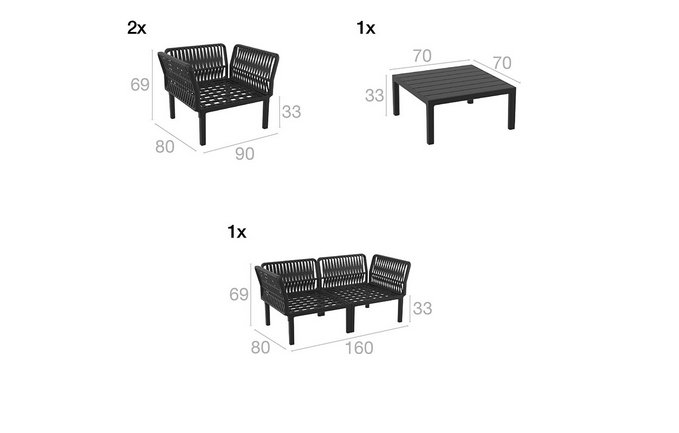 - Siesta Portofino Lounge Set Donkergrijs, zonder kussens