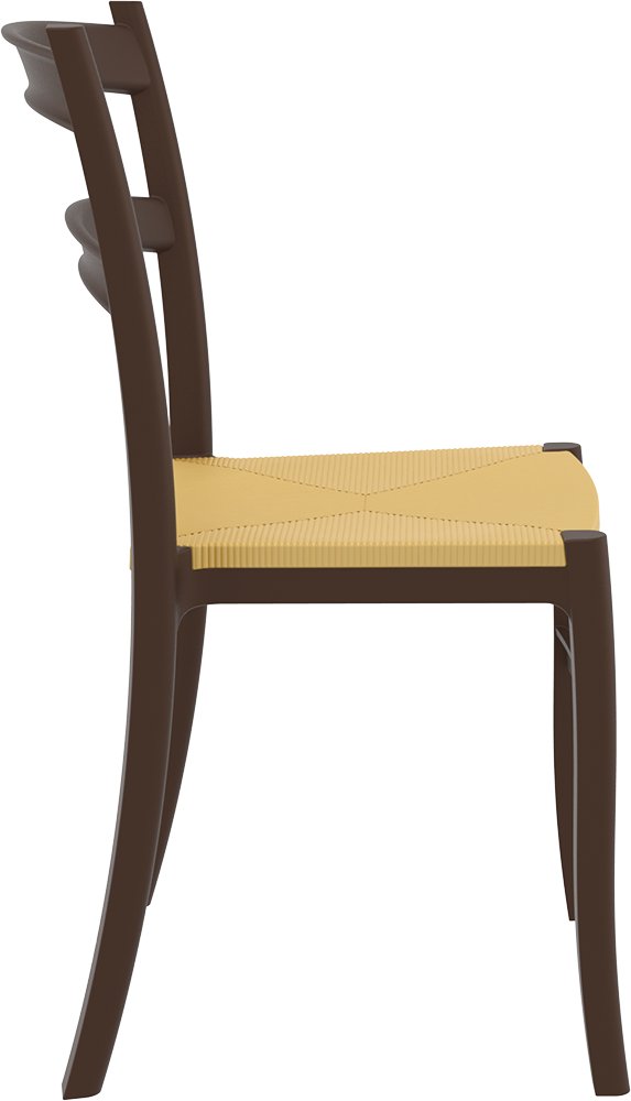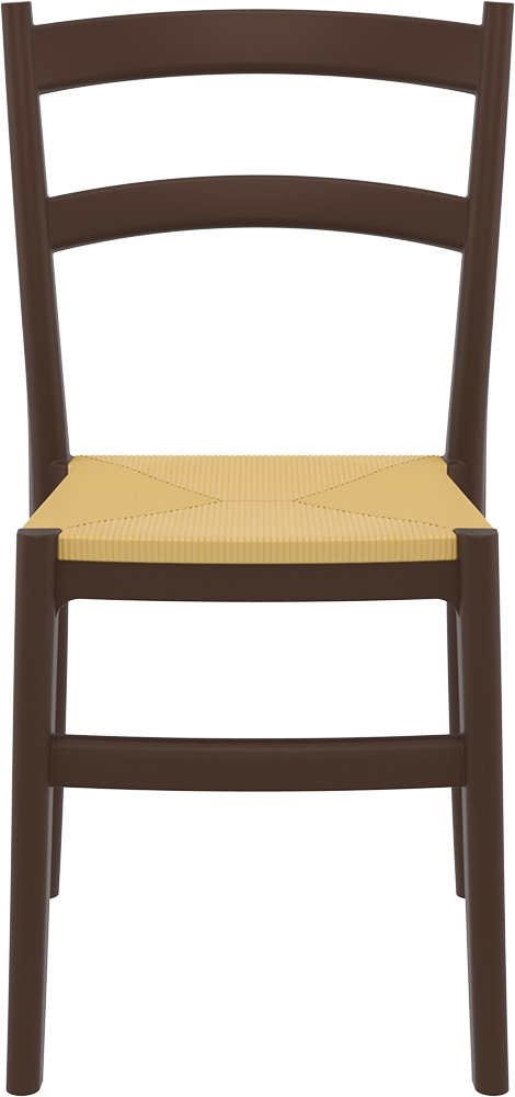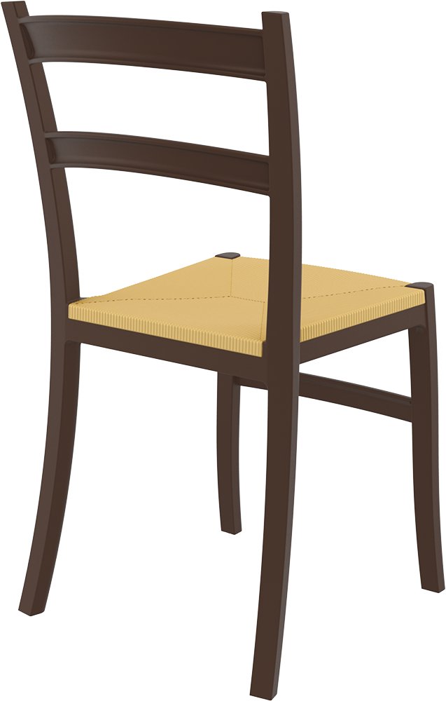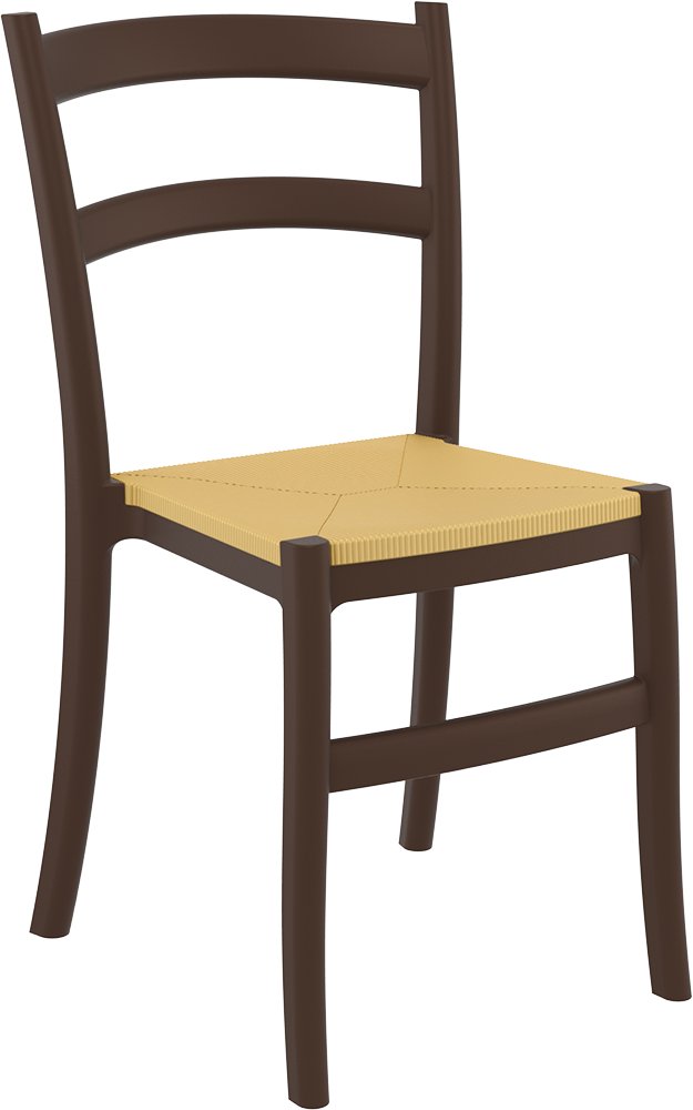 De bruine Tiffany-S stoel is vervaardigd met geavanceerde luchtvormtechnologie, met een solide frame van polypropyleen versterkt met glasvezel. Deze stoel is niet alleen robuust, maar ook stapelbaar voor gemakkelijk opbergen.