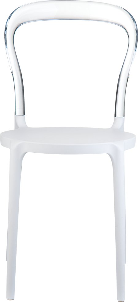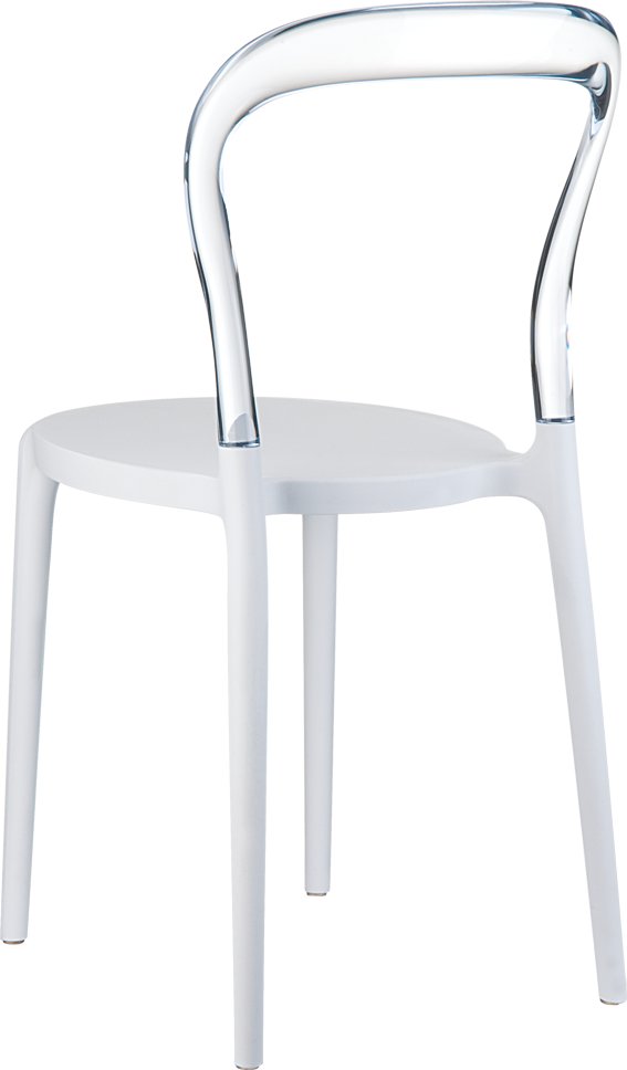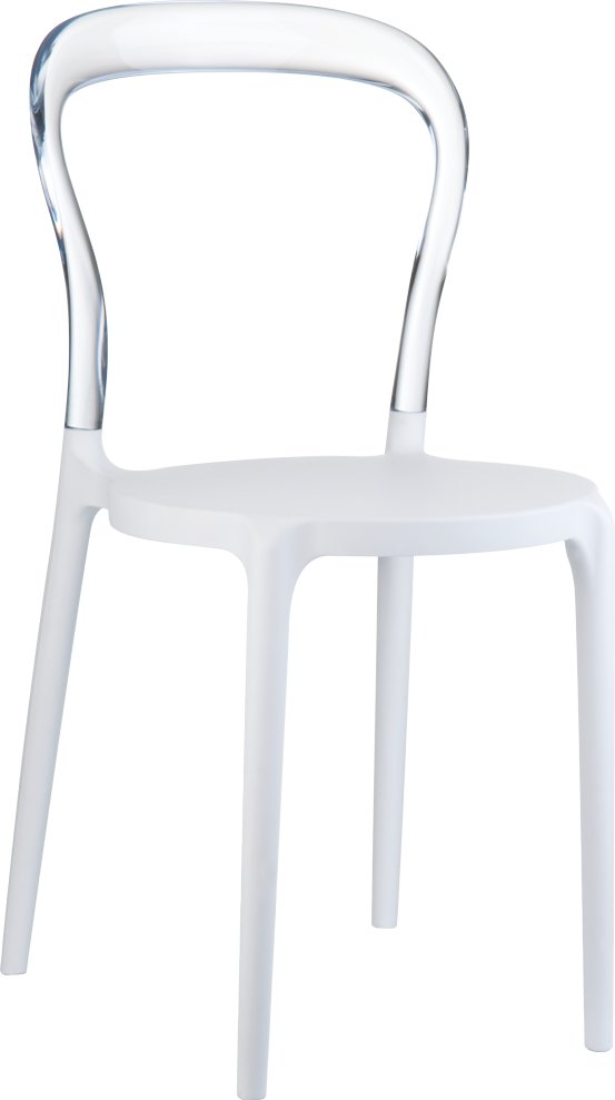 De Mr Bobo stoel combineert stijl met stevigheid, met een zitting van wit polypropyleen versterkt met glasvezel en een rugleuning van transparant polycarbonaat. Of je nu je tuin wilt opfrissen of een café terras wilt inrichten, deze stoel biedt comfort en duurzaamheid in één.