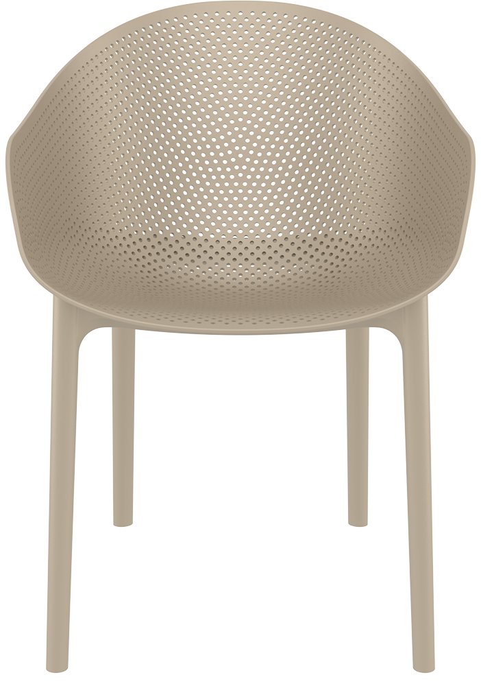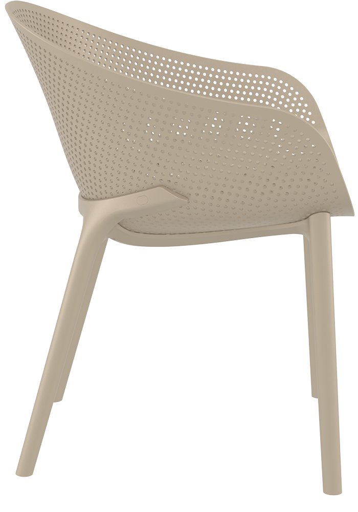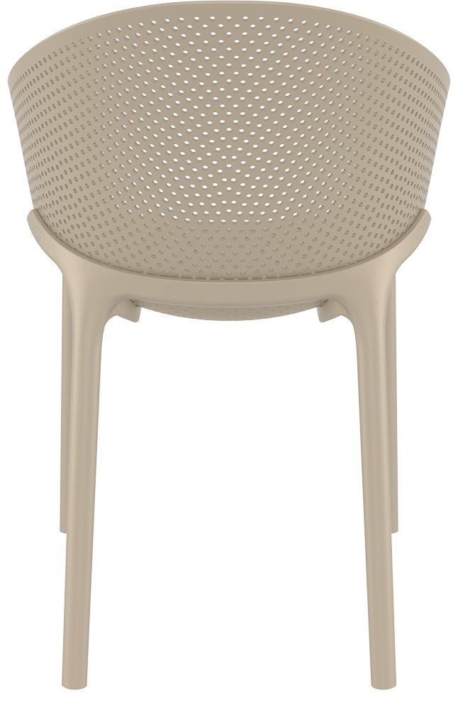 Deze moderne kuipstoel met doorlopende perforaties over de gehele zitkuip combineert stijl met praktisch comfort voor zowel binnen als buiten. Gemaakt van recyclebaar polypropyleen en verstevigd met glasvezel, biedt de taupe Sky kuipstoel een perfecte balans tussen duurzaamheid en eigentijds design.