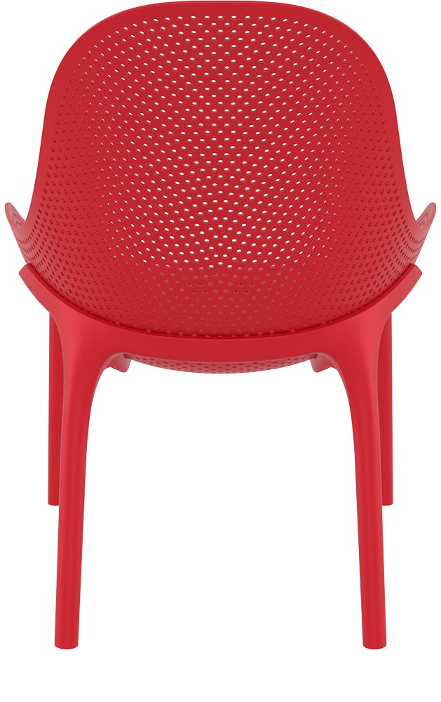 De stoel combineert stijl met functionaliteit: gemaakt van recyclebaar polypropyleen en verstevigd met glasvezel voor optimale duurzaamheid. De perforaties over de gehele zitkuip zorgen niet alleen voor een moderne uitstraling, maar ook voor een comfortabele zitervaring met verbeterde ventilatie.