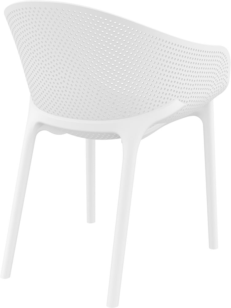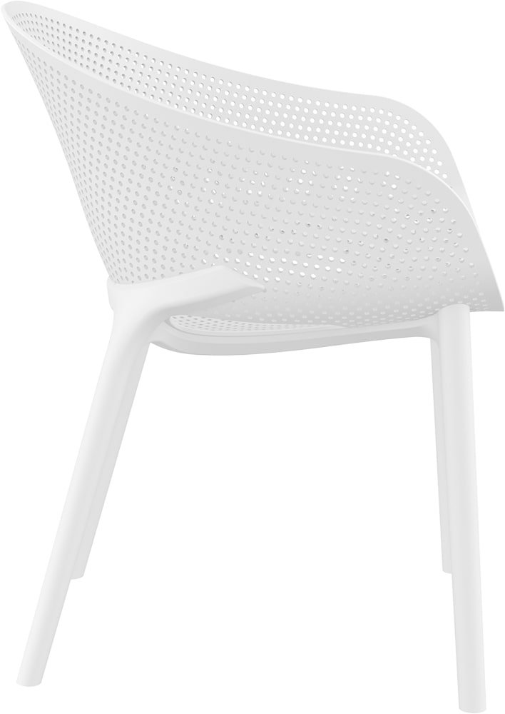 Maak kennis met de Siesta Sky Pro stoel in stijlvol wit, ontworpen om jouw comfort en stijl naar een hoger niveau te tillen. Met zijn geperforeerde zitting biedt deze stoel een moderne draai aan klassieke elegantie. De ademende perforaties zorgen voor een verkoelend en luchtig zitcomfort, perfect voor warme zomerdagen.