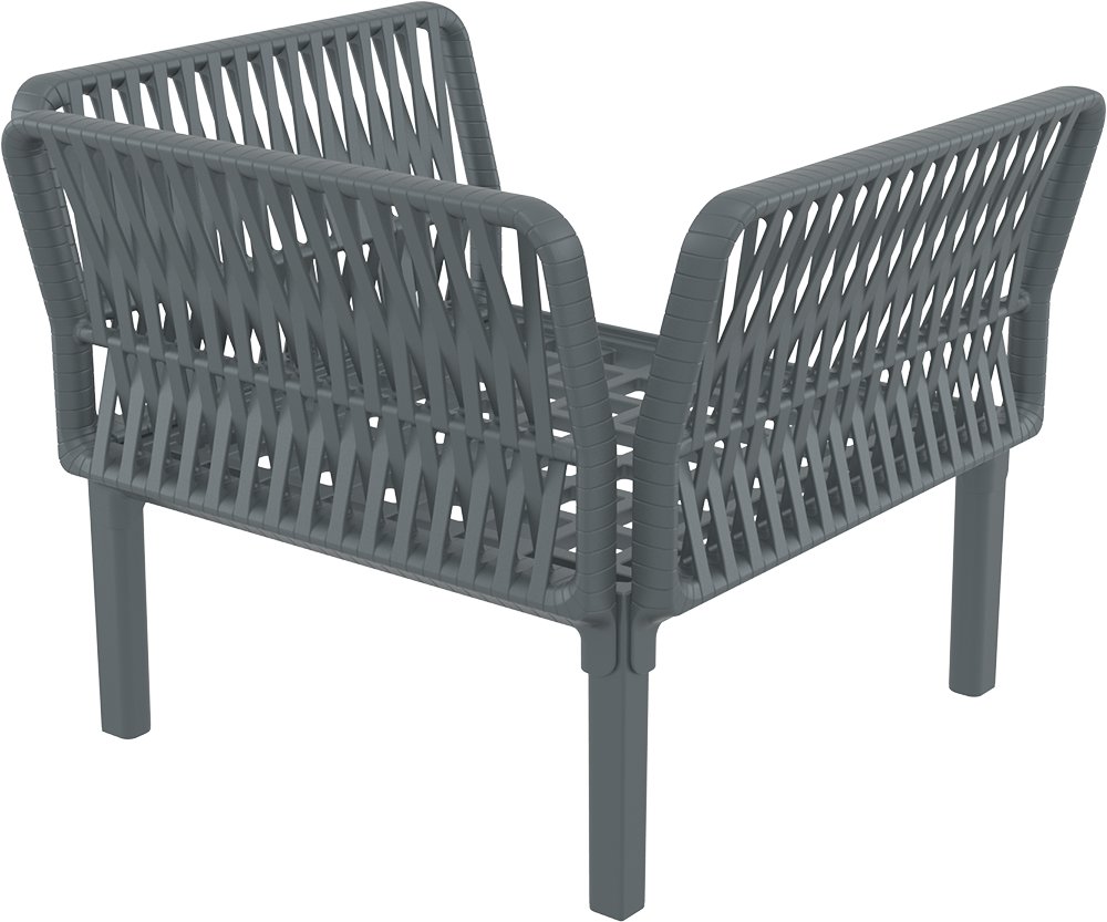 Deze stoere loungestoel in de kleur donkergrijs is eenvoudig zelf te monteren en gemaakt van duurzaam, weerbestendig resin dat is versterkt met glasvezel.