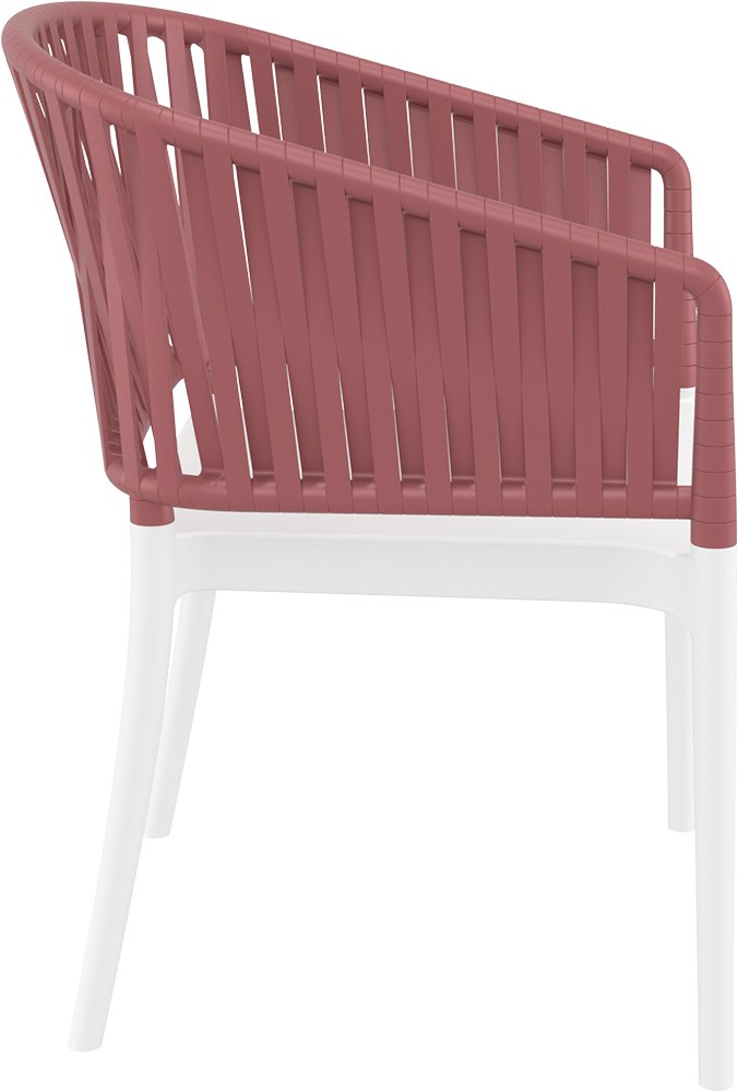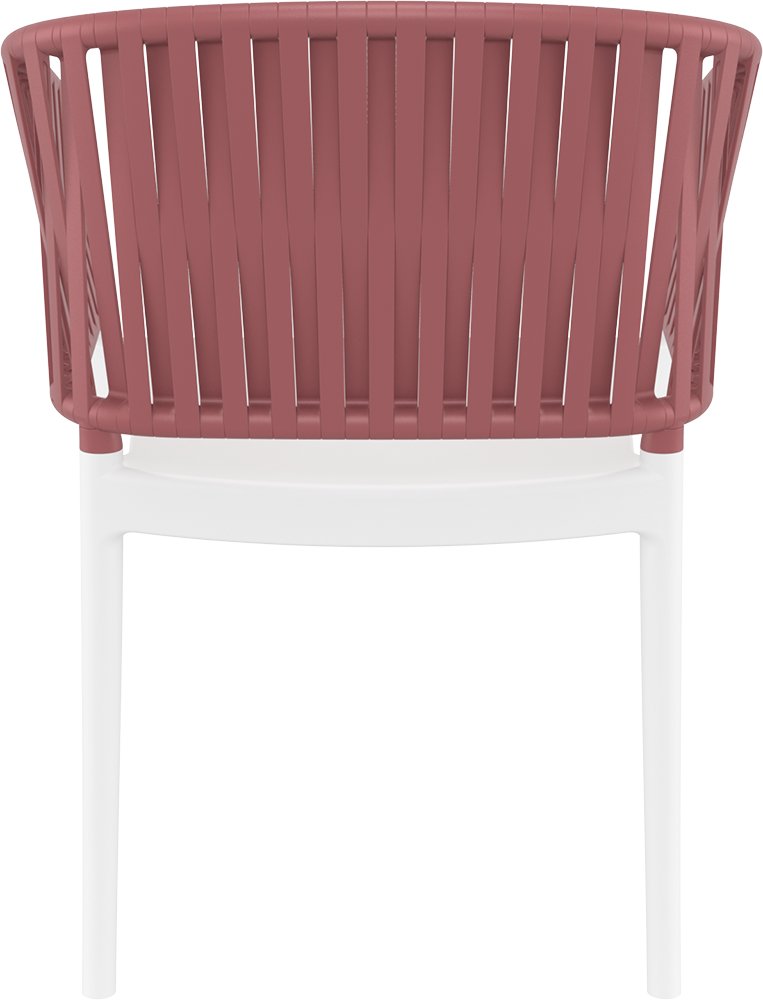 Met antislipvoetjes blijft de Portofino Armchair stabiel op elke ondergrond. De marsala rugleuning met subtiele 3D-details voegt een vleugje luxe en moderniteit toe, terwijl de witte zitting een frisse, tijdloze uitstraling heeft.