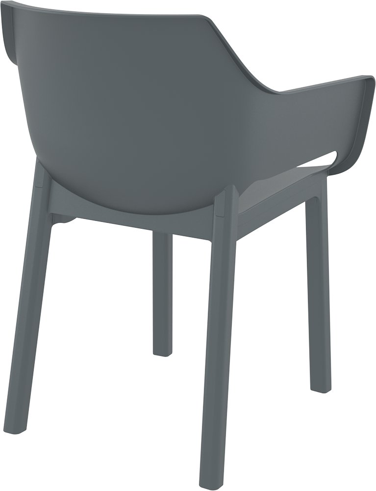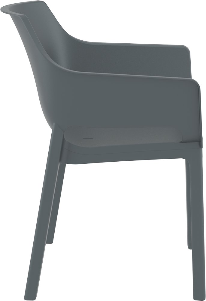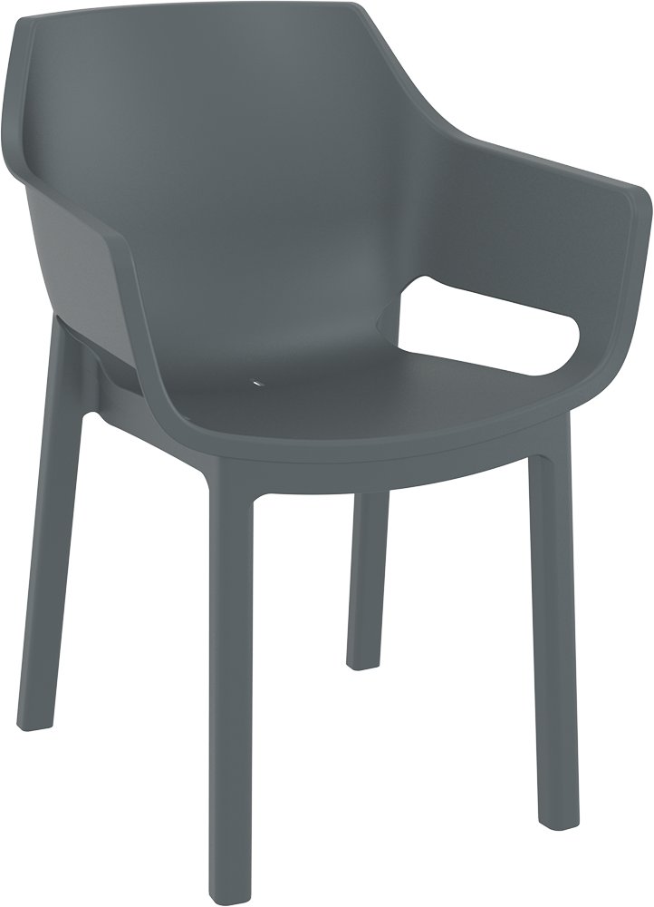 De Dora armstoel in donkergrijs past perfect bij elke moderne ruimte – van tuin tot eetkamer, van terras tot restaurant.