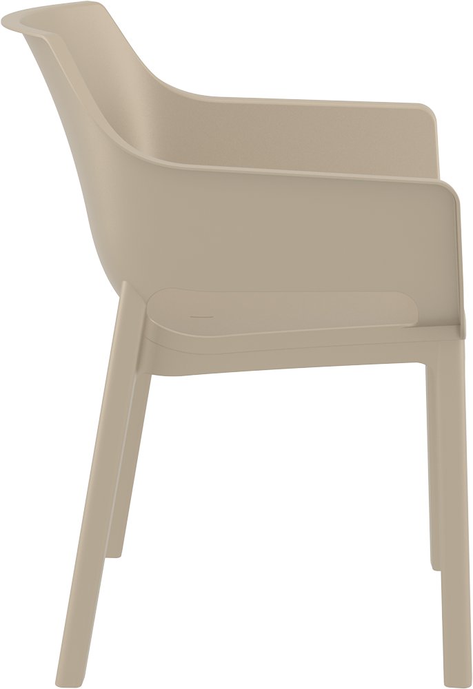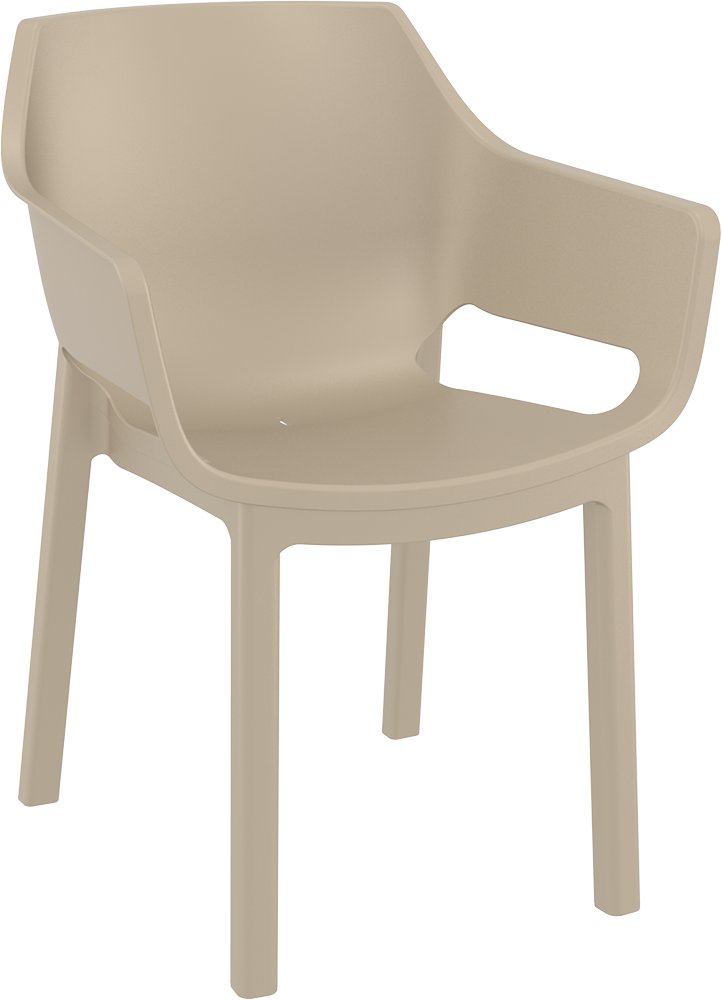 De Dora armstoel in taupe past perfect bij elke moderne ruimte – van tuin tot eetkamer, van terras tot restaurant.
