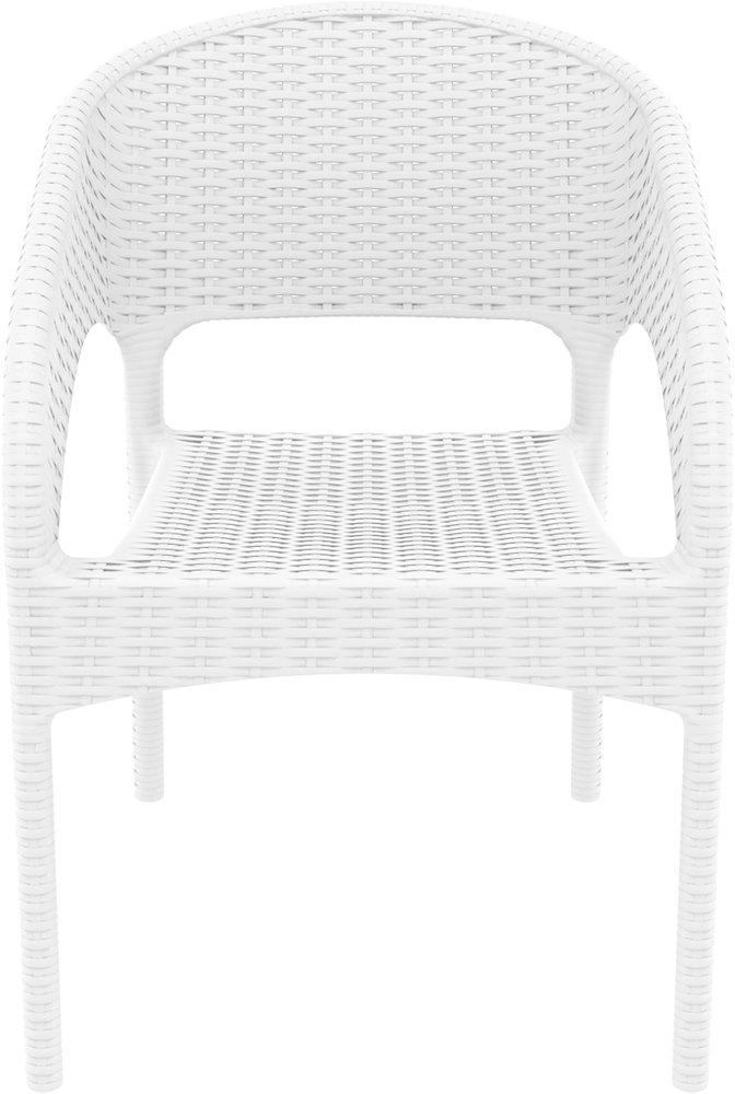 Stapelbaar, weerbestendig en onweerstaanbaar stijlvol! Deze Panama armstoel is vervaardigd uit duurzame, weerbestendige hars versterkt met glasvezel. Het niet-metalen frame zal nooit rafelen, roesten of vergaan, wat betekent dat je er jarenlang plezier van zult hebben, zowel binnen als buiten. Dankzij de UV-bescherming blijven de heldere witte kleuren prachtig en levendig, zelfs onder de zonnigste hemel!
