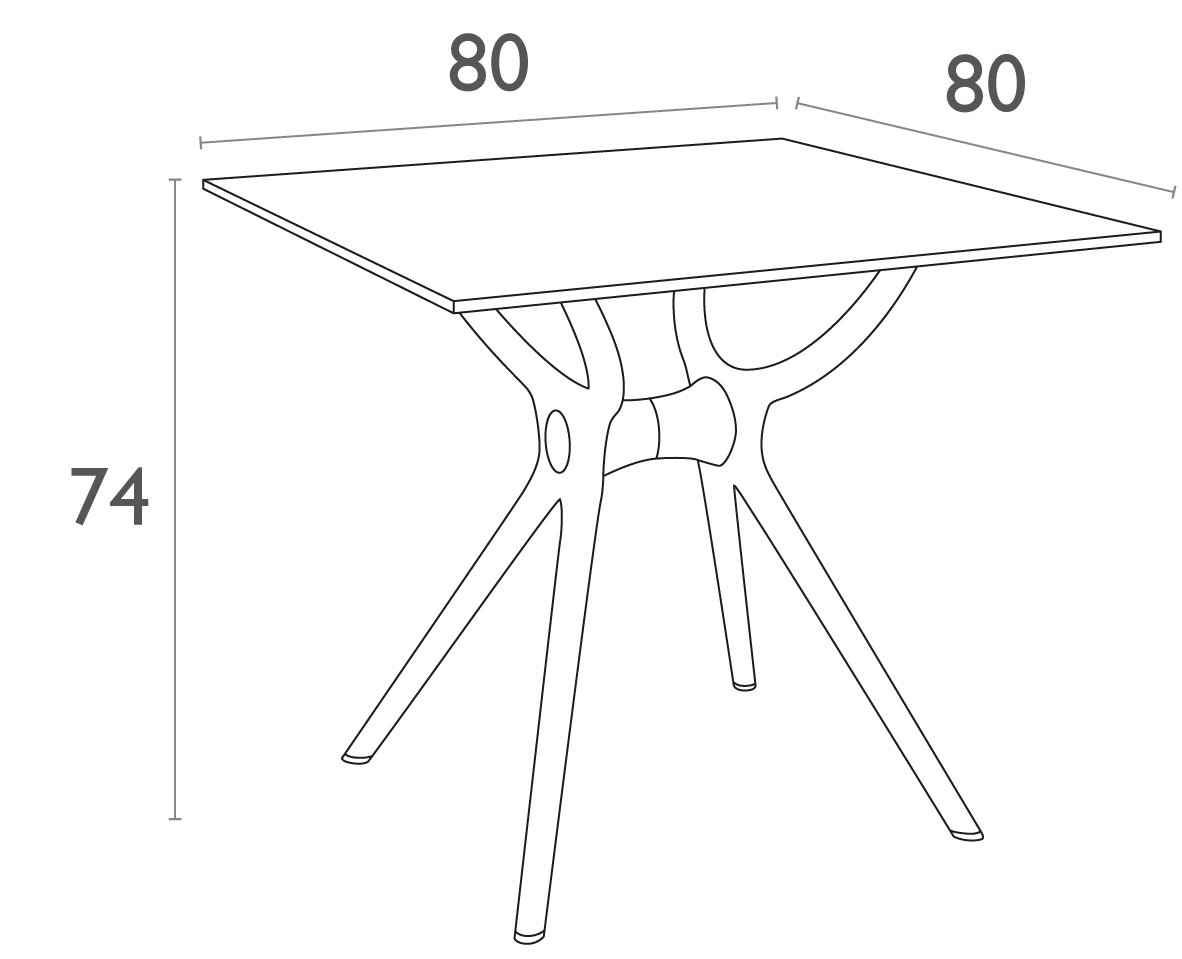 Deze tafel heeft een compact formaat van 80x80 cm, perfect voor diverse toepassingen. Het tafelblad is gemaakt van 12 mm dik HPL compact laminaat, wat zorgt voor een stevige constructie met een moderne uitstraling. De kunststof poten bieden een solide basis en maken de tafel geschikt voor verschillende omgevingen, van tuinen tot kantoren.