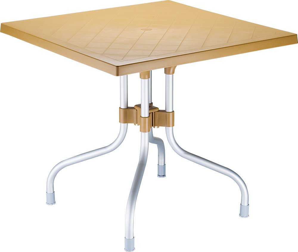 Stijlvol en praktisch, deze tafel in teakkleur is een ware blikvanger met haar geanodiseerde aluminium poten en een blad van 80x80 cm. Of je nu een gezellig tuinfeest plant of extra zitruimte nodig hebt in de woonkamer, de Forza staat altijd paraat.