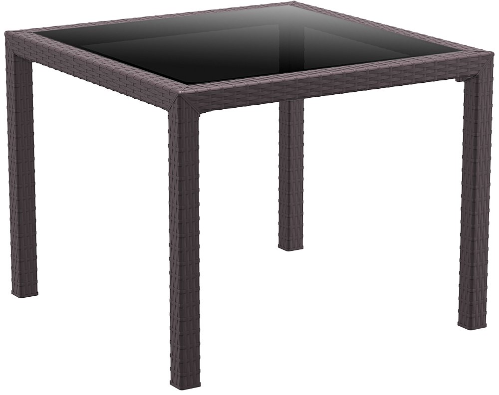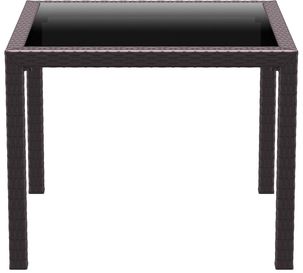 De Bali tafel is vervaardigd uit weerbestendige hars, waardoor hij nooit zal rafelen, roesten of vergaan, ongeacht het weer. De UV-bescherming zorgt ervoor dat de kleuren jarenlang behouden blijven zonder te vervagen, terwijl het donkere getemperde glas op het tafelblad een luxe uitstraling biedt.