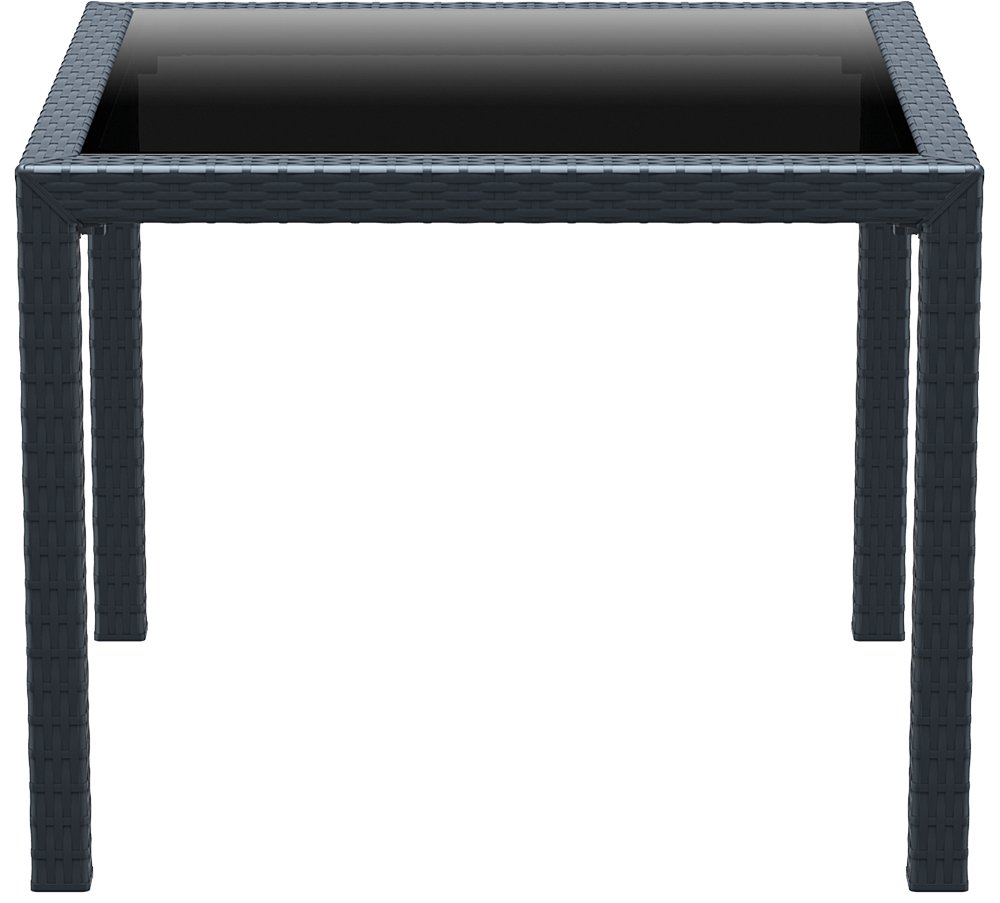 De Bali tafel is vervaardigd uit weerbestendige hars, waardoor hij nooit zal rafelen, roesten of vergaan, ongeacht het weer. De UV-bescherming zorgt ervoor dat de kleuren jarenlang behouden blijven zonder te vervagen, terwijl het donkere getemperde glas op het tafelblad een luxe uitstraling biedt.